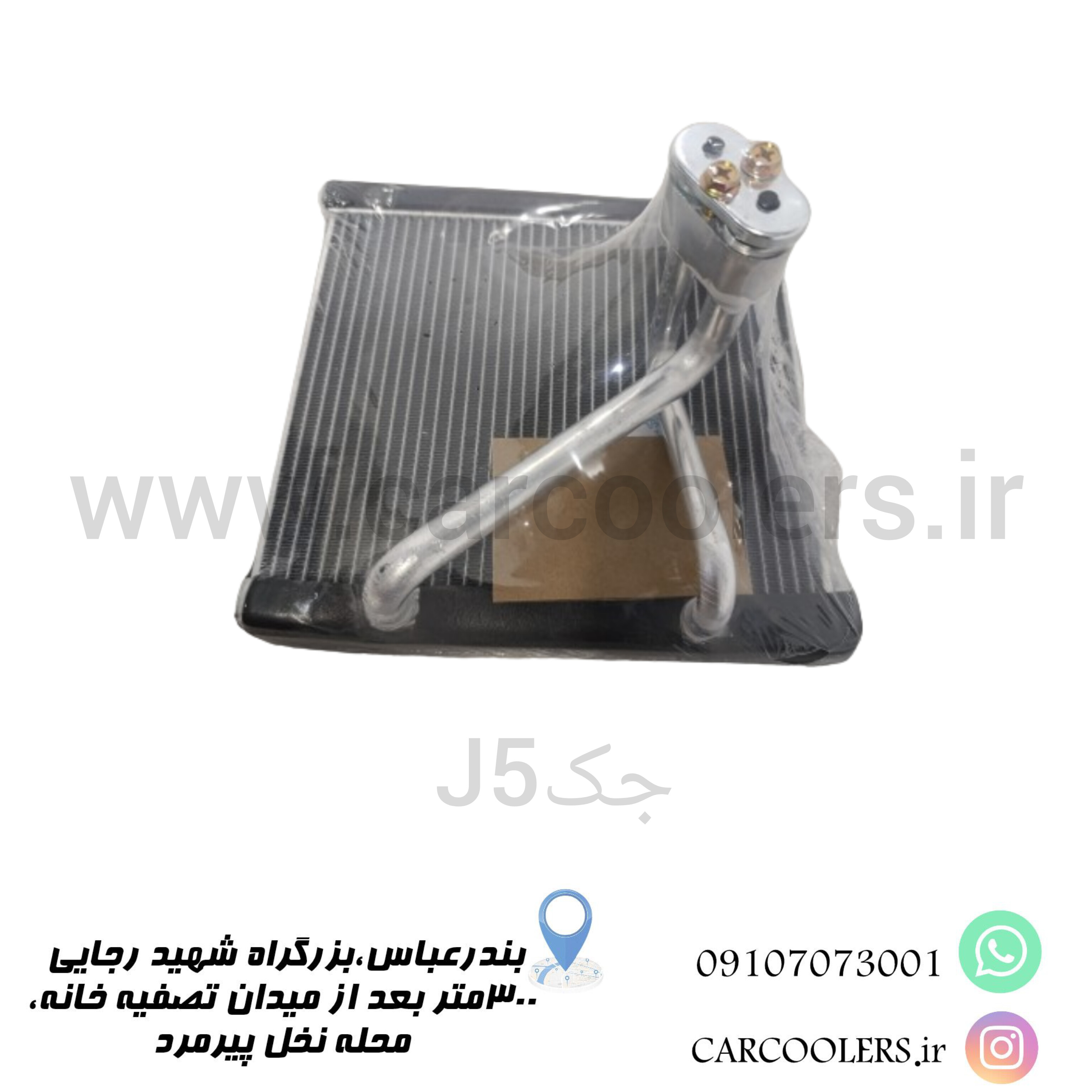 اواپراتور چیست وچگونه کار میکند؟ هسته اواپراتور جک J5 مانند دیگر خودرو ها رادیاتوری کوچک و آلومینیومی شکل است که در داخل کابین وپشت داشبورد ودر مجموعه ای به نام HV ACقرار دارد. که بیشتر قطعات مربوط به کولر و بخاری در این مجموعه قرار دارد همزمان با روشن شدن کولر فن تهویه مطبوع و کمپرسور نیز به گردش در می آید که کمپرسور گاز را به داخل هسته اواپراتور جک J5 از طریق شیر اکسپنشن والو پاشش میکند و با پاشیدن گاز به داخل هسته اواپراتور جک J5 گرمای محیط و رطوبت را جذب و رطوبت را که به صورت قطرات آب در می آیند که این قطرات آب به وسیله لوله ای به بیرون از کابین منتقل میشود. و با گردش هوایی که توسط فنی که در مجموعه اواپراتور قرار دار رطوبت و گرمای کابین را به اواپراتور منتقل و باعث کاهش دما و رطوبت داخل کابین خودرو میشود و به دلیل اینکه اواپراتور همیشه هوای کابین را ازخود عبور میدهد مانند یک فیلتر عمل میکند.